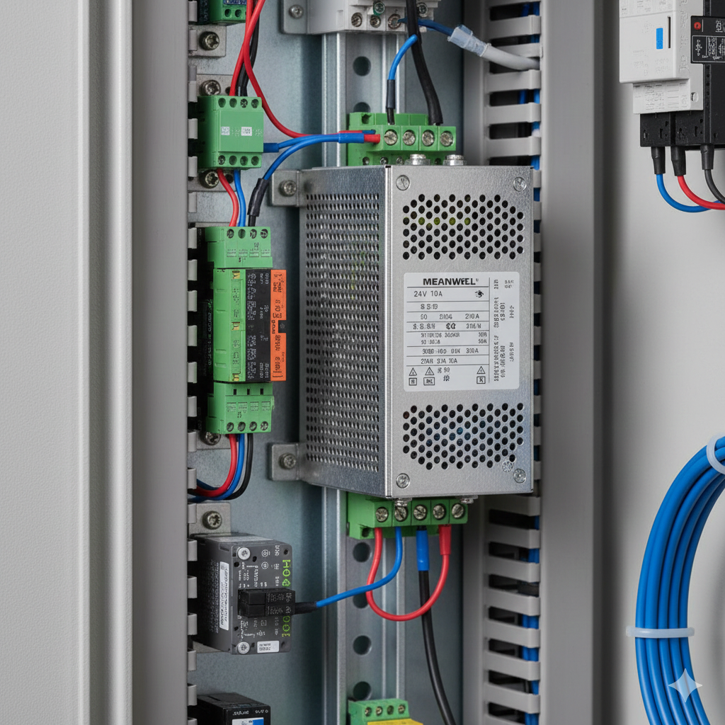 Robust units that convert line voltage into stable, regulated DC power (typically 24V) to safely run sensitive electronics and control circuits.
